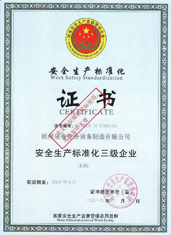 安全生產(chǎn)標(biāo)準(zhǔn)化證書(shū)