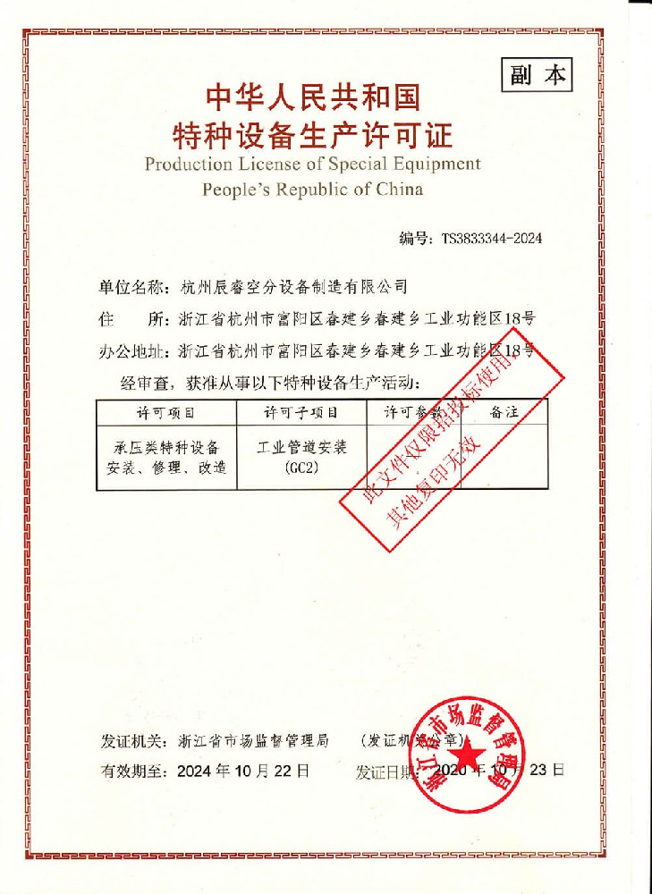 特種設(shè)備生產(chǎn)許可證