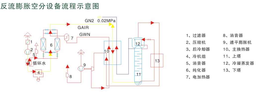 高純氮空分設(shè)備采用分子篩吸附、氣體膨脹機(jī)膨脹制冷、單塔精餾原理??筛鶕?jù)用戶需要不同形態(tài)(氣態(tài)。液態(tài))氮氣的使用,可根據(jù)用戶需要不同壓力等級氮氣定制,做到能耗最低,該振生產(chǎn)規(guī)模從10Nm3/h到10000Nm3/h(氮氣產(chǎn)量)均可按照用戶需求特殊定制。